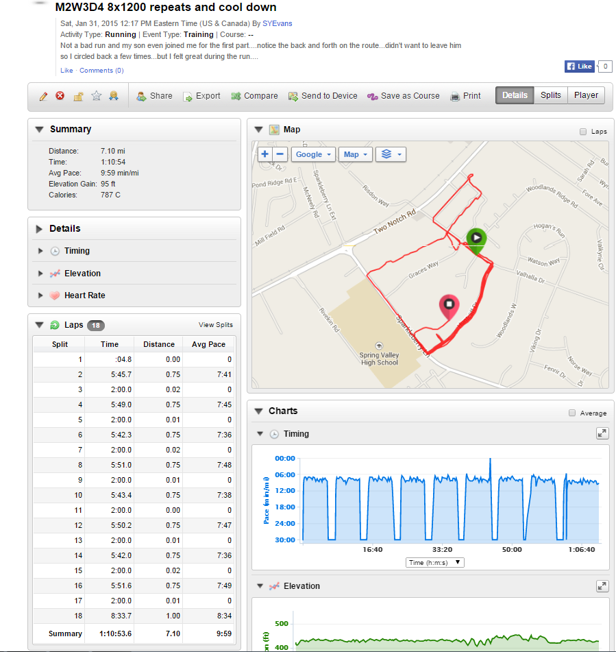 I did 8×1200 meter repeats at 7’45 with a one mile warm up followed by a one mile cool down at my CP. I was so proud of Diallo, he really gave it all he had (and that’s all I asked of him that day…just don’t quit). I felt really good doing my 1200 meter repeats…even though I ended up running circles around Allo (didn’t want him on those streets by himself), I didn’t feel tired. My running coach told me that was great because my next cycle will have me doing mile repeats at my 5K pace YIKES!!! FIYAH!!!